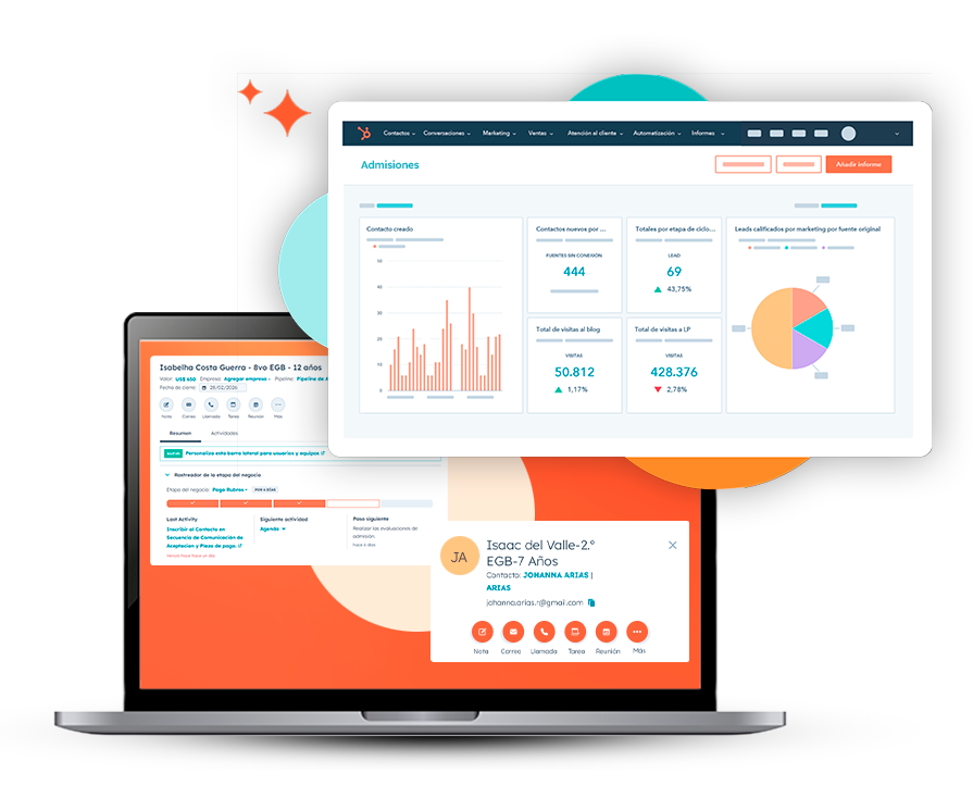 Es habilitar tu proceso de admisiones configurado y funcionando en HubSpot. Imagina una visión 360° de cada familia y procesos de admisión que fluyen solos.